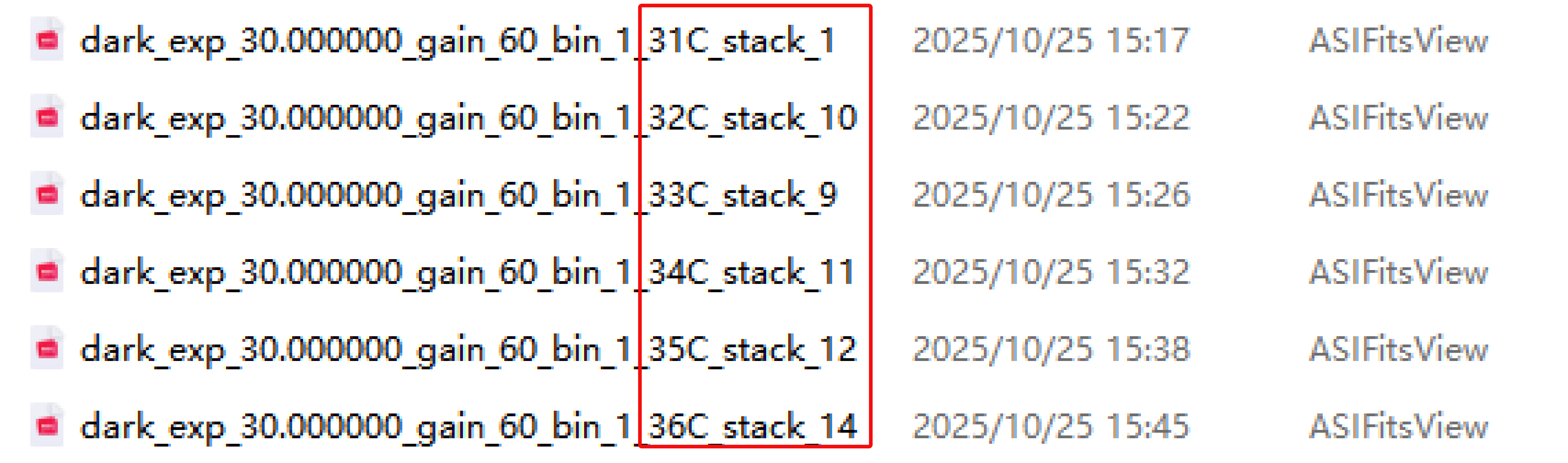 电脑中检查各温度暗场堆叠张数,暗场叠图越多效果越好,可以多拍几次(比如拍 2-3 次 10 张),这样每个温度的暗场叠图数量更多,消噪声效果更棒;